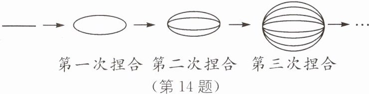 14 新情境 数学与生活融合 (2024·广东佛山禅城区张槎中学月考)你喜欢吃拉面吗?拉面馆的师傅将一根很粗的面条,捏合一起拉伸,再捏合,再拉伸,反复几次,就把这根很粗的面条,拉成了许多细的面条,如图所示,这样,第