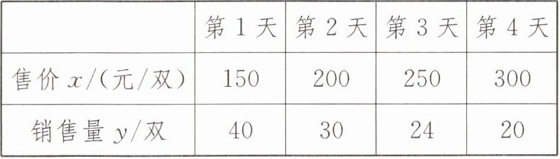 | 售价x/(元/双) | 150 | 200 | 250 | 300 |