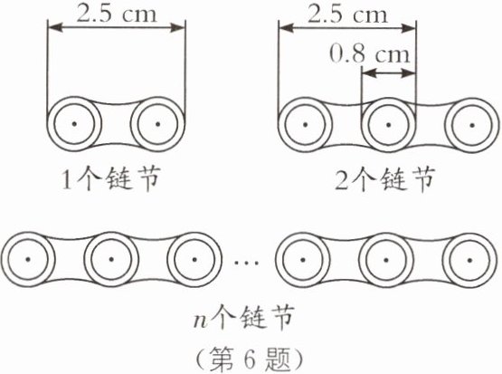 6 (2024·北京顺义区期末)自行车的链条由一个个小的链节组成,如图,每个链节的长度为 2.5 cm,链节与链节之间交叉重叠部分的圆的直径为 0.8 cm.