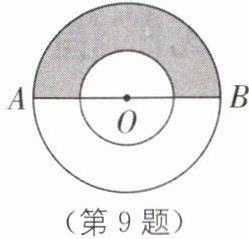 9 (四川成都自主招生)如图,圆环中大圆的半径为$r$,小圆的半径为$\frac{r}{2}$,$AB$为大圆的直径,则阴影部分的面积为(