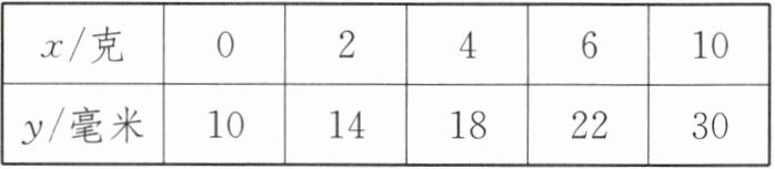 | $x$/克 | 0 | 2 | 4 | 6 | 10 |