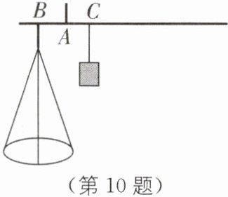 10 跨学科 杠杆 (2023·宁夏中考)如图是某种杆秤.在秤杆的点$A$处固定提纽,点$B$处挂秤盘,点$C$为 0 刻度点.当秤盘不放物品时,提起提纽,秤砣所挂位置移动到点$C$,秤杆处于平衡.秤盘放入$x$克物品后移动秤砣,当秤砣所挂位置与提纽的距离为$y$毫米时秤杆处于平衡.测得$x与y$的几组对应数据如下表: