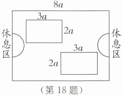 18 如图是一个长方形娱乐场,其宽为6a米,长为8a米,小沈提供了如图所示的设计方案,已知两个休息区和两个球场区域以外都是绿地,其中半圆形休息区的直径和球场的宽都是2a米,球场的长为3a米.