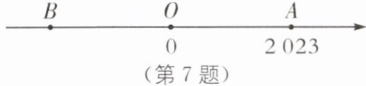 7 (2023·自贡中考)如图,数轴上点 A 表示的数是2023,$OA= OB$,则点 B 表示的数是(