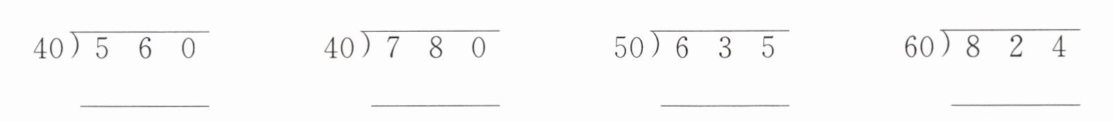 两 两 两 两 竖式略 [提示]用竖式计算除数是整十数的除法时,应先看被除数的前两位,前两位不够除时,再看被除数的前三位。除到哪一位,商就写在哪一位的上面。