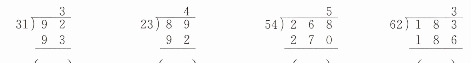 (2)2 3 4 2 [提示]在计算除法时,如果把除数看小了来试商,初商可能会偏大。