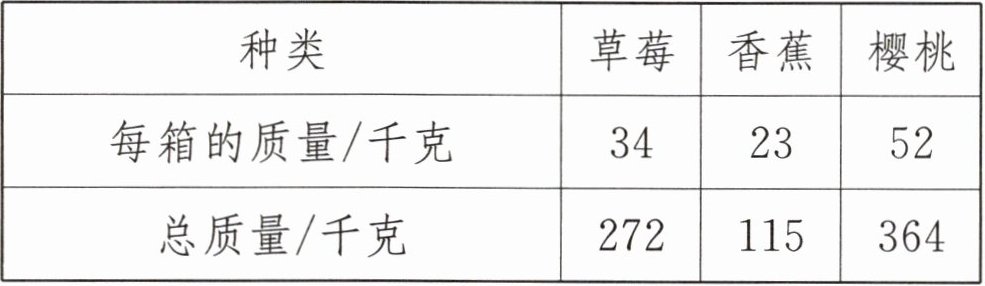 | 每箱的质量/千克 | 34 | 23 | 52 |
