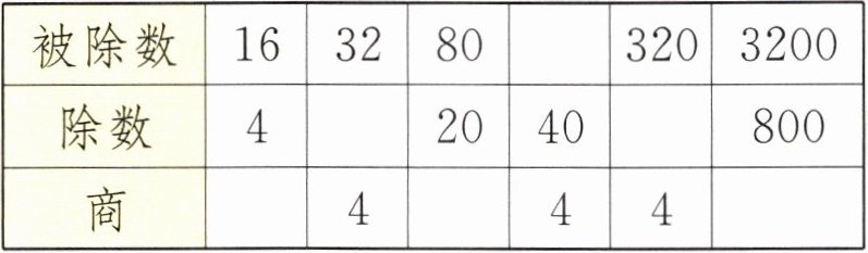 | 除数 | 4 | | 20 | 40 | | 800 |