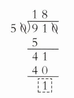 1. 传统文化 圆明园 圆明园是一座大型皇家宫苑,位于北京西郊。第一小学的910名师生乘车去圆明园参观,每辆车限乘客50人。需要租多少辆车?李明的计算过程如右下图,算式中虚线框里的“1”表示( )。
