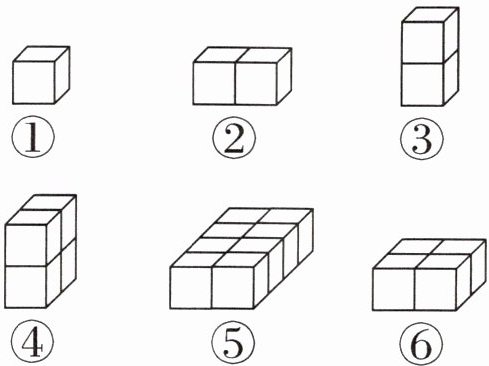 [提示]可以先分别观察6个物体从前面、上面和右面看到的形状,再比较填一填。