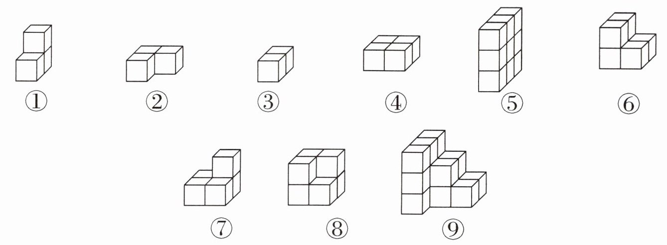 3. 新考法 操作探究 下图①~⑥中哪两堆的立体图形拼起来,可以得到图⑦~⑨中的立体图形?