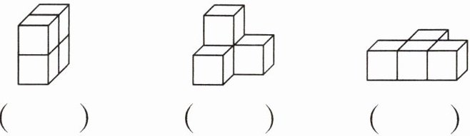 1. 新考法 图形探究 将4个同样大小的小正方体摆成不同图形,哪一种摆法从上面看到的图形是□,在正确的摆法下面画“√”。