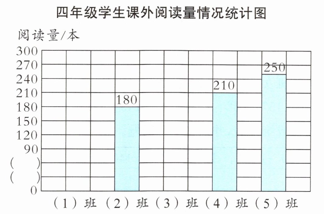 3. “书香校园”读书活动中,四年级5个班学生一个月课外阅读量情况如下。