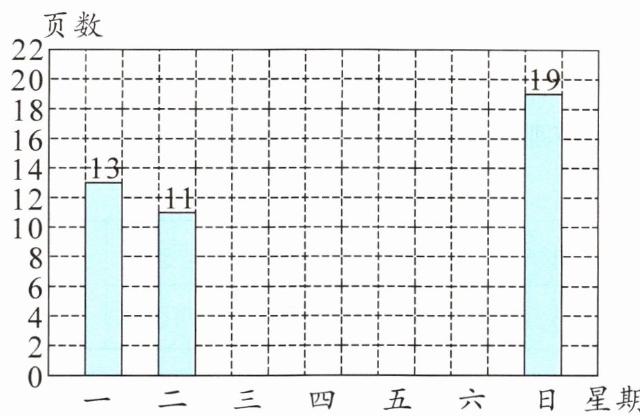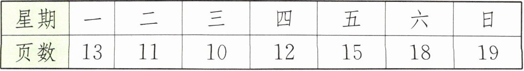 (2)19>18>15>13>12>11>10,阅读最多的一天阅读了19页,阅读最少的一天阅读了10页,用19-10即可求出相差的页数;将7天阅读的页数加一起,即可求出上星期一共阅读的页数。