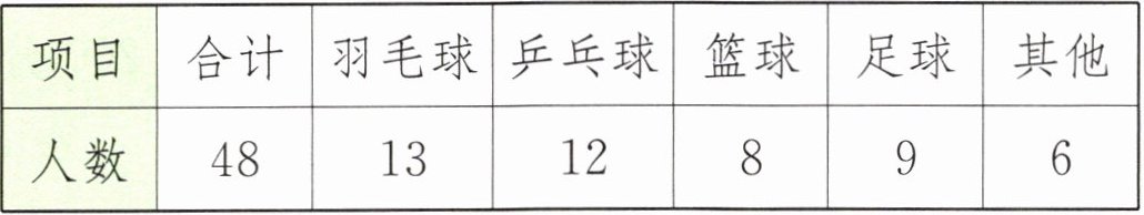 |项目|合计|羽毛球|乒乓球|篮球|足球|其他|