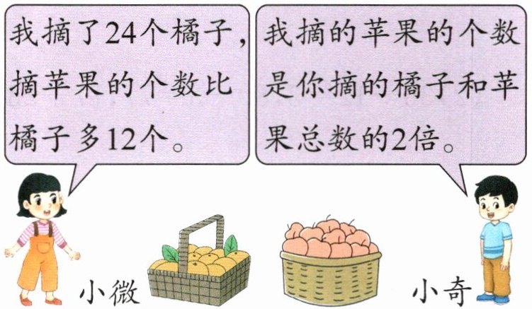 [提示]橘子的个数+苹果比橘子多的12个=小微摘的苹果的个数,小微摘的橘子与苹果的总个数×2=小奇摘的苹果的个数。