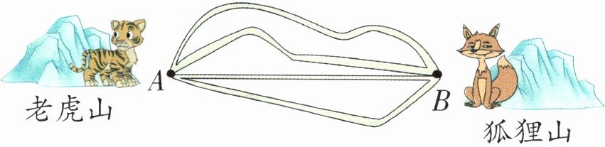 [提示]从老虎山到狐狸山有4条路,最短的路线是那条点A到点B之间的线段,因为两点之间线段最短。