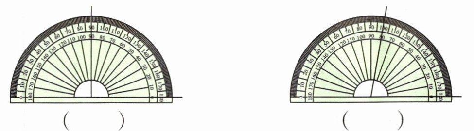2. 公元前,阿拉伯人将平角分成了180份,角度制诞生,人们根据角度制制造了量角器。看量角器上的刻度,填出每个角各是多少度。