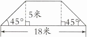 5. 新情境 观日桥 某市在临海公园修了一座观日桥,早晨站在桥面上可以第一时间看到日出的美丽景观。这座桥的横截面是如右下图所示的梯形,梯形的下底是 18 米,高是 5 米,两个底角都是45°,求梯形的面积。