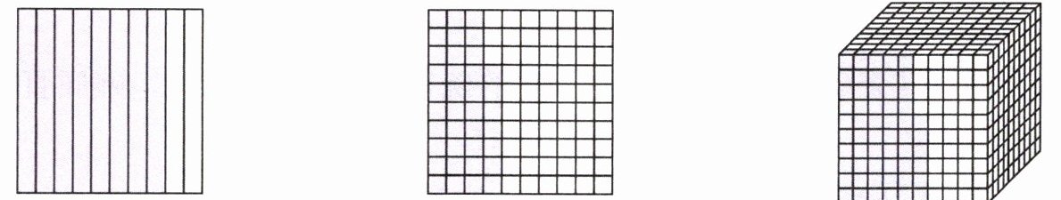 [提示]图一把整体“1”平均分成 10 份,一份是$\frac{1}{10}$,也就是 0.1,8 份是$\frac{8}{10}$,也就是 0.8;图二把整体“1”平均分成 100 份,一份是$\frac{1}{100}$,也就是 0.01,37 份是$\frac{37}{100}$,也就是 0.37;图三把整体“1”平均分成 1000 份,一份是$\frac{1}{1000}$,也就是 0.001,56 份是$\frac{56}{1000}$,也就是 0.056。