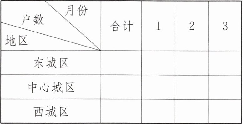 (2)3 2 [提示]在表头中找到“东城区”一行,因为530>493>371,所以3月份宽带接入户数最多;在表头找到“西城区”一行,因为810>787>552,所以2月份宽带接入户数最少。