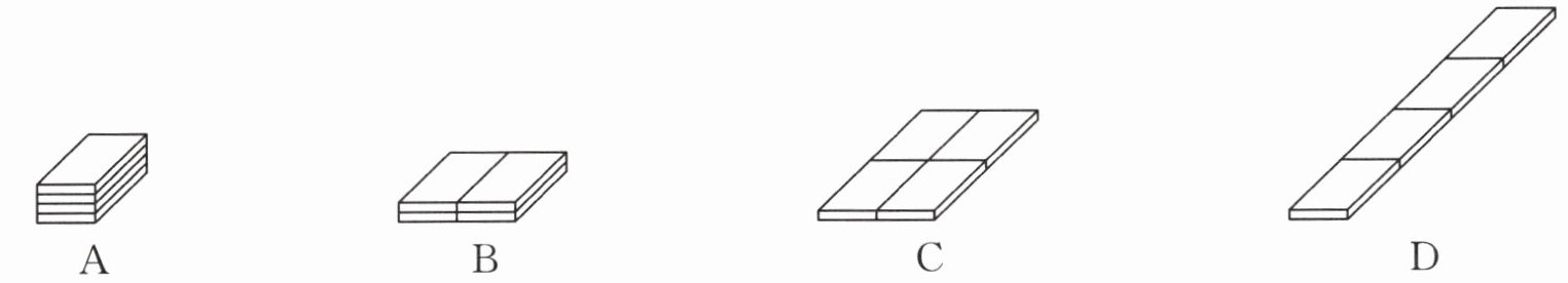 2. 把4个完全相同的长8厘米、宽6厘米、高1厘米的长方体盒子包装起来,下面几种包装方法中,(