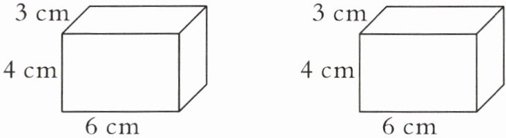 1. 下面有两个相同的长方体纸盒,现在需要将这两个长方体纸盒拼成一个大的长方体纸盒进行包装。