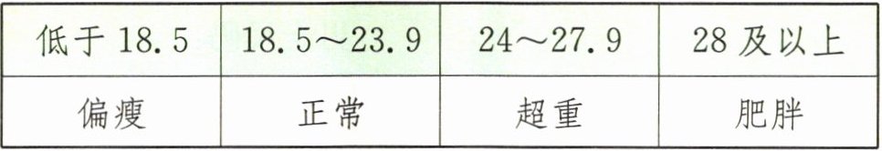 |偏瘦|正常|超重|肥胖|