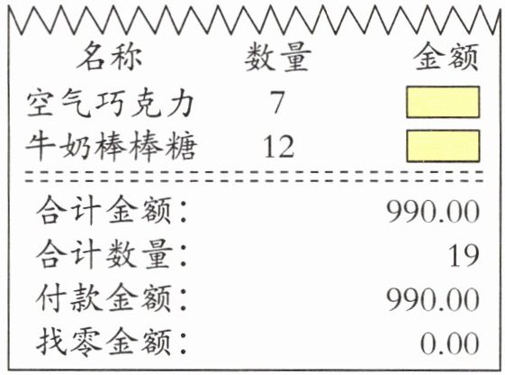 牛奶棒棒糖:$990÷(7×3 + 12)=30$(元) $30×12 = 360$(元) 空气巧克力:$30×3 = 90$(元)$90×7 = 630$(元)