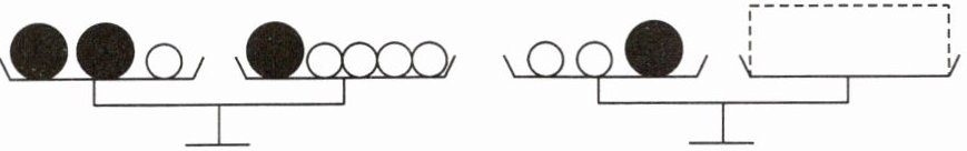 2. 根据左边的天平想一想,要使右边的天平平衡,在方框里只放白球,要放(