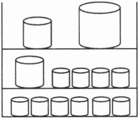 [提示]一个大杯的容量十一个中杯的容量=一个中杯的容量+4个小杯的容量=6个小杯的容量,所以1个大杯的容量=4个小杯的容量。先计算出每层放果汁的容量,即果汁的总升数÷铁架的层数,再用每层放果汁的升数÷第三层小杯的数量,计算出每个小杯的容量,然后求出大杯的容量,再加上10个小杯的容量即可。