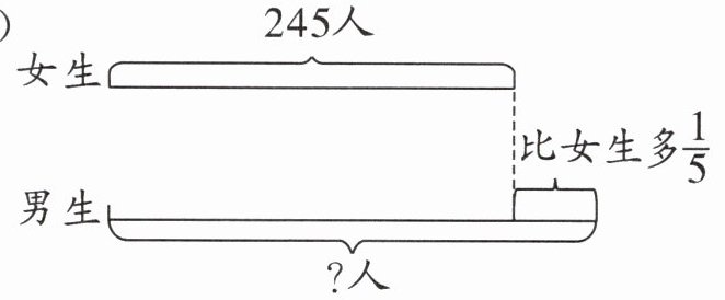 [提示]根据题意可知,女生有 245 人,男生的人数比女生多 $\frac{1}{5}$,是把女生人数看作单位“1”,男生人数相当于女生人数的 $(1+\frac{1}{5})$,用女生人数乘 $(1+\frac{1}{5})$就是男生人数。