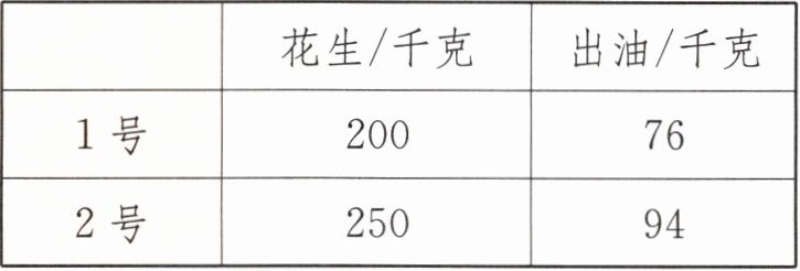 )号花生的出油率高一些。| | 花生/千克 | 出油/千克 |