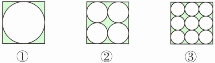 (3)三个边长都是24厘米的正方形,从中分别剪出1个最大的圆、4个相等的尽可能大的圆和9个相等的尽可能大的圆做盒盖,如下图。下面说法正确的是(