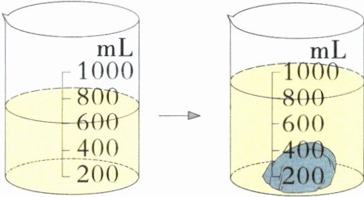 3. 《曹冲称象》是同学们耳熟能详的故事。曹冲运用转化的策略,把大象的质量转化成石头的质量,从而化复杂为简单,充分体现了我国古人的智慧。其实,测量石头、土豆等不规则物体的体积,我们也可以运用这一策略,像右面这样测量。石头的体积是(