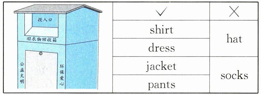 ( )4. Students can put ____ into the collection box. A. hats B. dresses C. socks