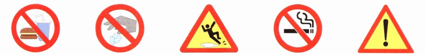 1. see,sign,does,mean 2. means,litter 3. smoking,smell 4. careful,wet 5. can't,into