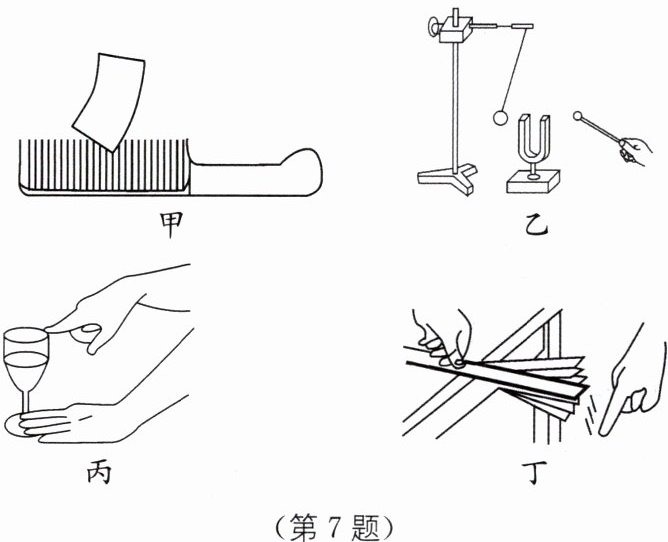D.图丁:改变钢尺伸出桌面的长度,用相同的力度拨动钢尺时所听到的声音