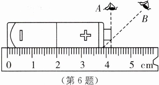 6 教材P123图5-4改编 (2024·宿迁中考节选)如图所示测量7号干电池长度,读数方法正确的是______(填“A”或“B”),电池长度为______cm.