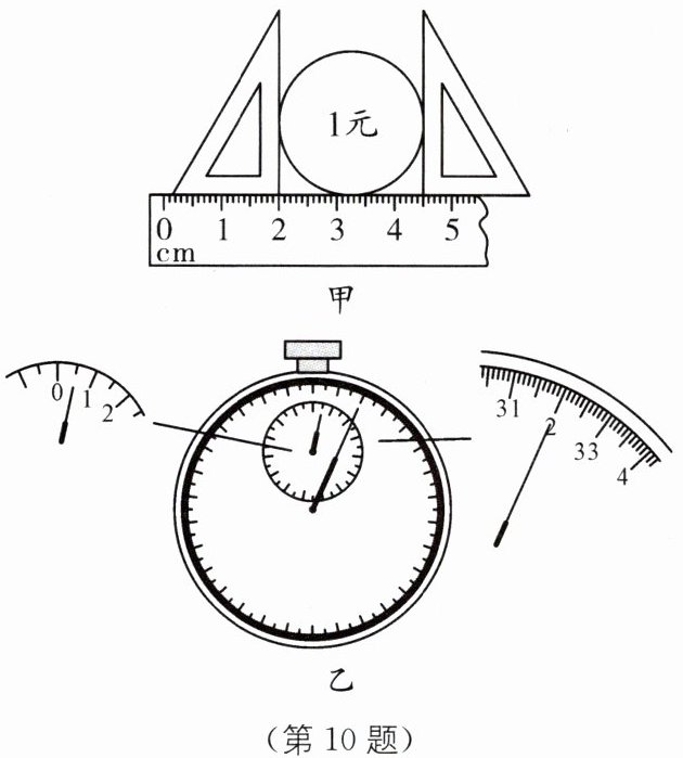 10 如图甲所示方法测出的硬币直径是______cm,图乙中秒表读数为______s.