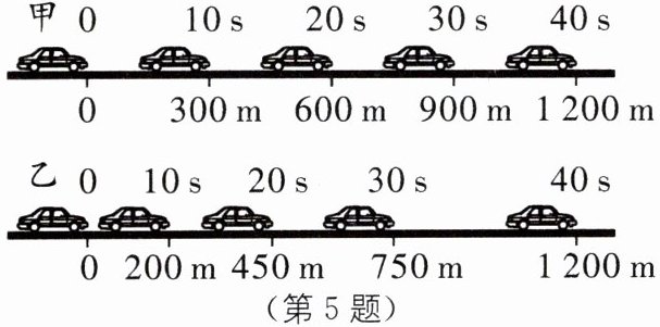 5 如图所示记录了甲、乙两车同时在同一平直公路上行驶时,在相同的时间内通过的路程.下列分析中正确的是( ).