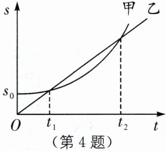 4 甲、乙两物体同时开始做直线运动,它们的路程 s 与时间 t 的图像如图所示,则下列判断正确的是( ).