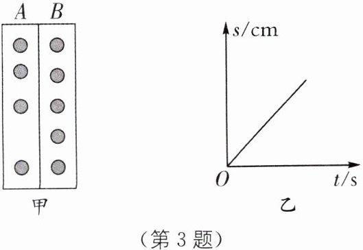 3 将 A、B 两小球从同一高度同时释放,图甲是在它们运动的过程中,每隔相等时间曝光一次所得到的照片.则图甲中 ______ 小球的平均速度大,可以用图乙中 s-t 图像描述 ______ 小球的运动.(填“A”或“B”)