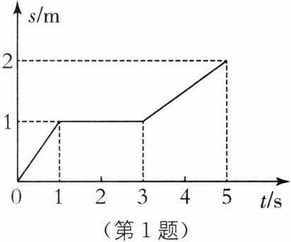C [解析]由物体运动的s-t图像可知,在1~3s内,物体运动的路程为零,其速度为0,处于静止状态,故A、D错误;由图像知:物体在0~1s内和3~5s内通过的路程都为1m,但所用时间不同,3~5s内用时较长,故物体在0~1s内比3~5s内运动得快,故B错误;物体在5s内的平均速度v=st=2m5s=0.4m/s.故C正确。