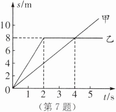 7 甲、乙两物体,同时从同一地点沿直线向东运动,它们的 s-t 图像如图所示。甲的速度为______,3 s 末,甲、乙相距______。