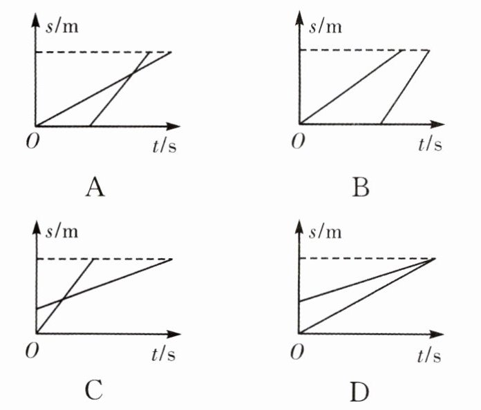 6 第一次“龟兔赛跑”,兔子因为在途中睡觉而输掉比赛,很不服气,决定与乌龟再比一次,并且骄傲地说,这次它一定不睡觉,让乌龟从起点先跑一段距离它再去追都可以赢,结果兔子又一次输掉了比赛,则下列图像可以体现这次比赛过程的是( )。