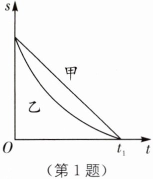 1.A [解析]根据s-t图像可知,乙车的运动图像是曲线,且曲线越来越平缓,说明乙车做减速运动,甲车的运动图像是直线,说明甲车做匀速直线运动,故A正确,B错误;根据s-t图像可知,0~t₁时间内甲、乙两车通过的路程相等,所用时间也相等,则二者的平均速度相等,故C错误;根据s-t图像可知,0~t₁时间内,乙车与出发点之间的距离始终大于甲车与出发点之间的距离,即乙车在前方,故D错误。故选A。