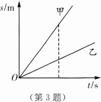 3.A [解析]本题考查了与运动有关的图像问题。由图可知,甲、乙两车的运动路程s与时间t的关系图像均是经过原点的倾斜的射线,因此可以说明甲、乙两车均做匀速直线运动,在相等时间内,甲车通过的路程较长,根据$v=\frac{s}{t}$可知,甲车的速度大于乙车的速度,故A正确,B错误;因为甲、乙两车同时、同地、同向行驶,且甲车的速度大于乙车的速度,因此以乙车为参照物,甲车向前运动,以甲车为参照物,乙车向后运动,故C、D错误。