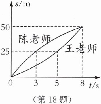 18 九月底,崂山区某学校校运会隆重举行。在教工中老年组 50 m 短距离赛时,陈老师和王老师比赛过程中通过的路程随时间变化的图像如图所示,请通过计算或分析回答下列问题。