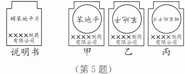 5. 新情境 药瓶中的凸透镜 有一种药瓶的瓶盖为凸透镜,可以用来观察说明书,调整瓶盖与说明书之间的距离,看到的情形如图甲、乙、丙所示,关于瓶盖与说明书之间的距离,下列判断中正确的是( ).